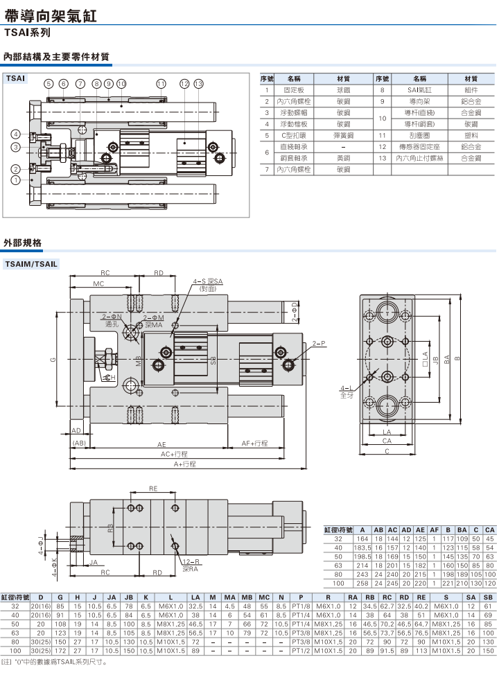 TSAIM帶導向架氣缸